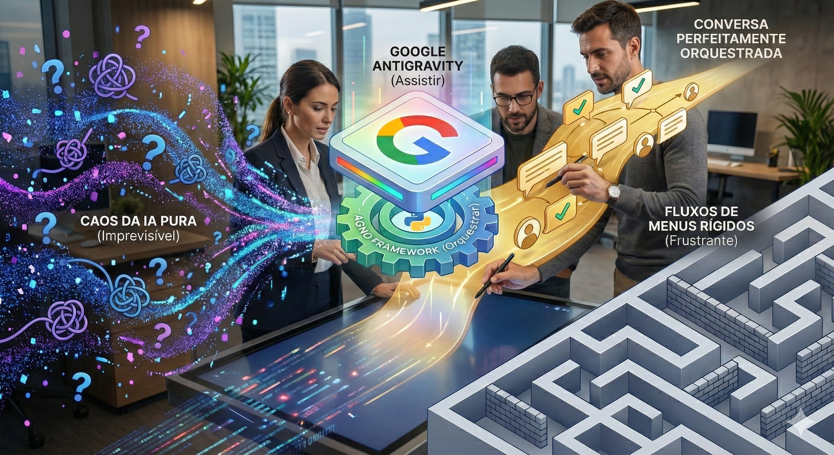 O Google Antigravity funciona como um ambiente de desenvolvimento assistido por IA.